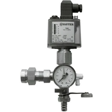 bauteilgeprüft, bestehend aus: einstellbarem Druckbegrenzer, Manometer, Verteilerrohr, gesichertem Absperrventil und Ablassventil