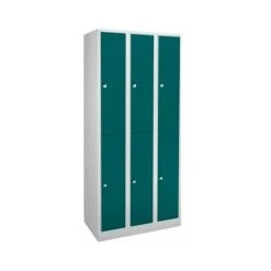 Anzahl Abteile: 6, Breite: 900 mm, Höhe: 1950 mm, Innenbreite: 298 mm, Innenhöhe: 912 mm, Staffelpreisvorteil ab: 1 Stück, Tastaturplatte: 0, Tiefe: 500 mm, Anlieferung: montiert, Ausführung Spindgestell: mit Bodensockel, Innenausstattung: 1 Kleiderstange mit 3 Haken, Korpusfarbe: lichtgrau, Material: Stahlblech, punktgeschweißt, Preiseinheit: Stück, Türfarbe: opalgrün RAL 6026, Verschlussart: Doppelbartschloss mit 2 Schlüsseln