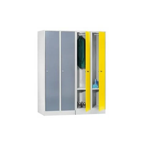 Glatte Türen, doppelwandig und verstärkt. Serienmäßig mit Zylinderschlössern, verschieden schließend. Belüftung durch Halbrosetten in der Rückwand.