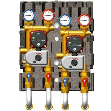 zur direkten Montage am Speicher BSP/BSP-SL, bestehend aus: Hocheffizienzpumpe (BSP-MK 1/2 2x), selbstregelnd, montierter Mischermotor (BSP-MK 1/2 2x), 3-Wege-Mischer DN 20 (BSP-MK 1/2 2x), je 2x Kugelhähnen im Vor- und Rücklauf zur Wartung ohne Puffer und Heizungsentleerung, integrierter Schwerkraftbremse zur Verhinderung von Fehlzirkulationen, Bypassdrossel zur Einstellung einer konstanten Rücklauf-Beimischung, Thermometer, Anschlüsse flachdichtend, EPP-Wärmedämmschalen