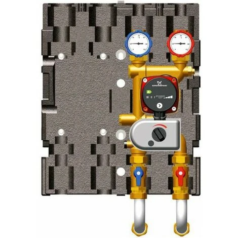 zur direkten Montage am Speicher BSP/BSP-SL, bestehend aus: Hocheffizienzpumpe (BSP-MK 1/2 2x), selbstregelnd, montierter Mischermotor (BSP-MK 1/2 2x), 3-Wege-Mischer DN 20 (BSP-MK 1/2 2x), je 2x Kugelhähnen im Vor- und Rücklauf zur Wartung ohne Puffer und Heizungsentleerung, integrierter Schwerkraftbremse zur Verhinderung von Fehlzirkulationen, Bypassdrossel zur Einstellung einer konstanten Rücklauf-Beimischung, Thermometer, Anschlüsse flachdichtend, EPP-Wärmedämmschalen