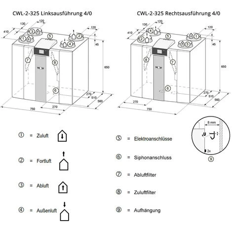 - Erhältlich auch als CWL-2-400 mit 400m³/h Luftleistung