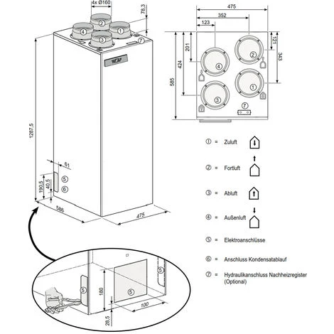 - Elektr. Vorheizregister 1000W im Gerät integriert