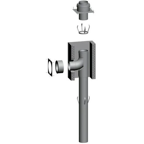 raumluftunabhängig, C33x, C53, raumluftabgängig, B23, bestehend aus: Schachtabdeckung DN 160 (Edelstahl) mit Mündungsrohr (Polypropylen schwarz), Abstandshalter DN 160, Stützbogen 87° DN 160 (Polypropylen) mit Abstützung, Wandfutter DN 160/225 (Edelstahl), Mauerblende DN 225 (Edelstahl), Gleitmittel-Tube 50 ml