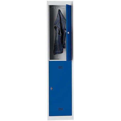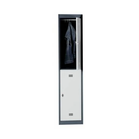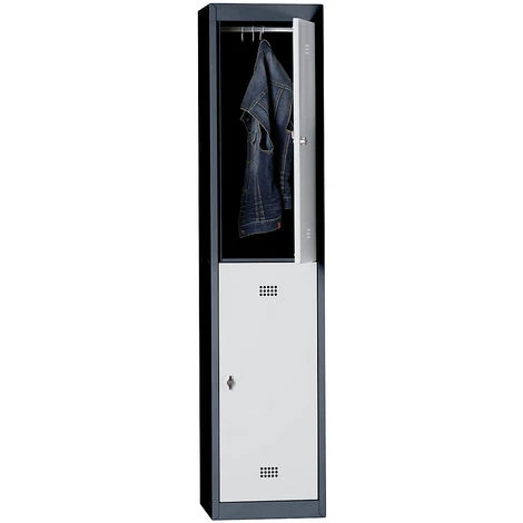Abteilhöhen: 840 mm, Anzahl Abteile: 2, Breite: 400 mm, Höhe: 1800 mm, Staffelpreisvorteil ab: 1 Stück, Tastaturplatte: 0, Tiefe: 500 mm, Anlieferung: zerlegte, Ausführung: Anbauelement, Innenausstattung: 1 Kleiderstange, Konstruktion: Stecksystem, Korpusfarbe: lichtgrau, Material: Stahl, Preiseinheit: Stück, Türfarbe: lichtgrau, Verschlussart: Doppelbartschloss mit 2 Schlüsseln