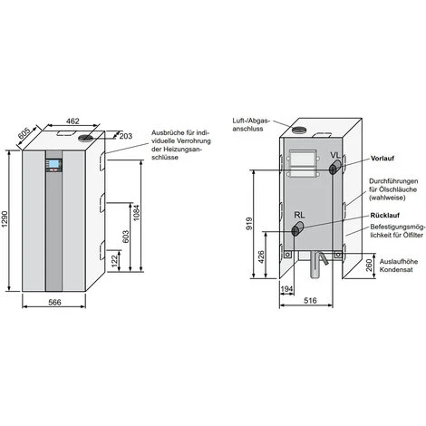 - Direkt an der Wand aufstellbar, spart dadurch viel Platz im Heizraum