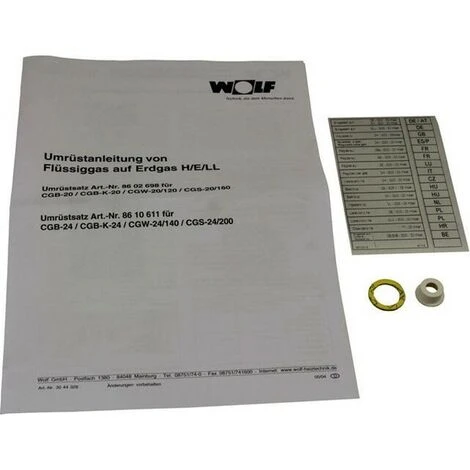 WOLF Umrüstsatz für Gasbrennwertthermen CGB CGW CGS -24 Flg. a Erdg bzw LL a E