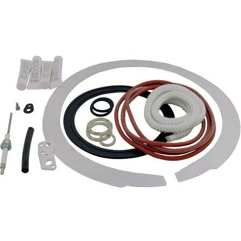 für eine Wartung bestehend aus: 4x 10 g Siliconfett, Dichtung Brenner, 2x Dichtungen Brennerkammer oben/unten, 2x O-Ringe Ø 27 x 4, 2x Flachdichtungen Ø 37,5 x 27 x 2, 1x Flachdichtung Ø 24 x 17 x 2, 1x Überwachungselektrode mit Dichtung und Schraube, 1x Deckblech für Heizwasserwärmetauscher, 1x Dichtschnur Ø 10 mm, 910 mm lang, 1x Wartungsanleitung TGB-40/TGB-60